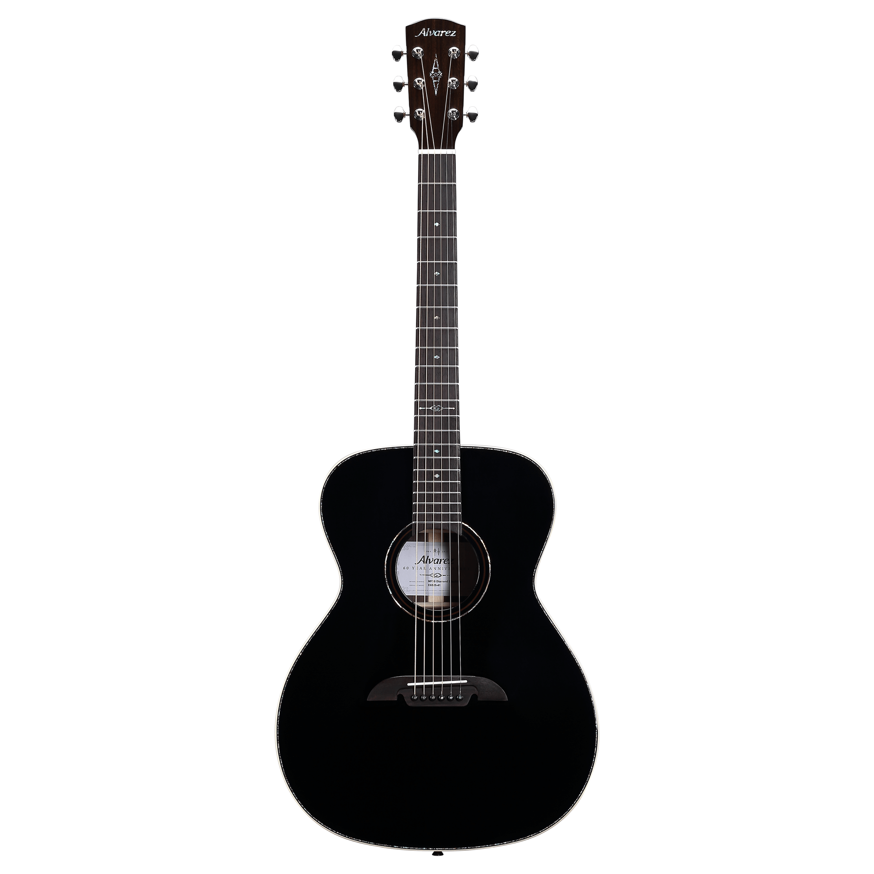 In celebration of the 60th Anniversary for Alvarez Guitars, two very special Limited Edition Folk/OM guitar models have been released, limited to 60 pieces each, this is the Diamond Black Top #54/60.