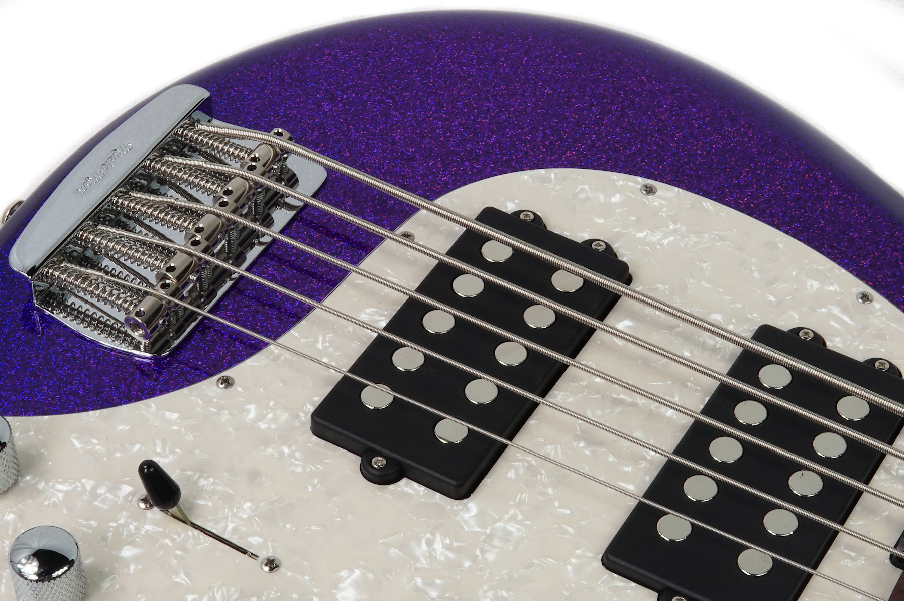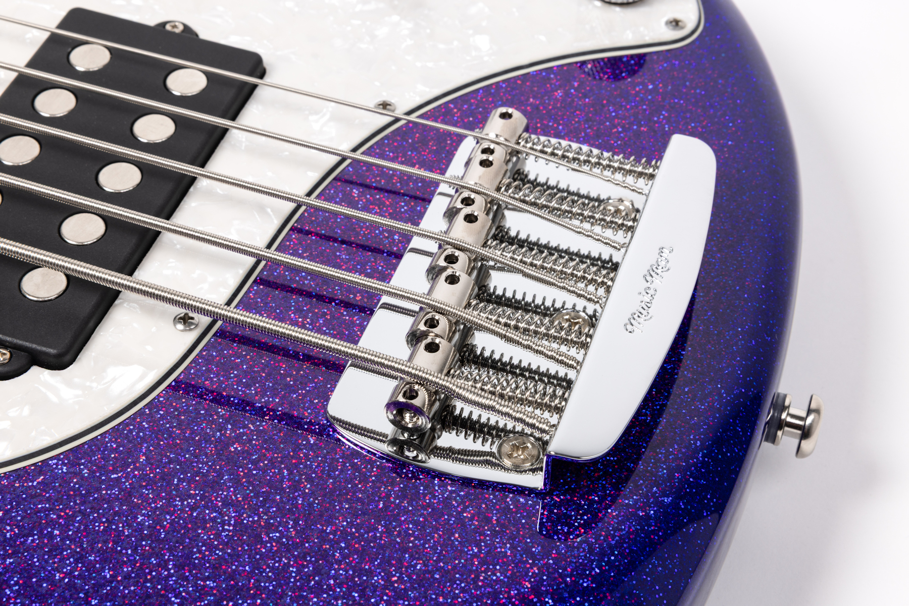 Bridge Vintage Music Man® top loaded steel bridge plate with chrome plated steel saddles